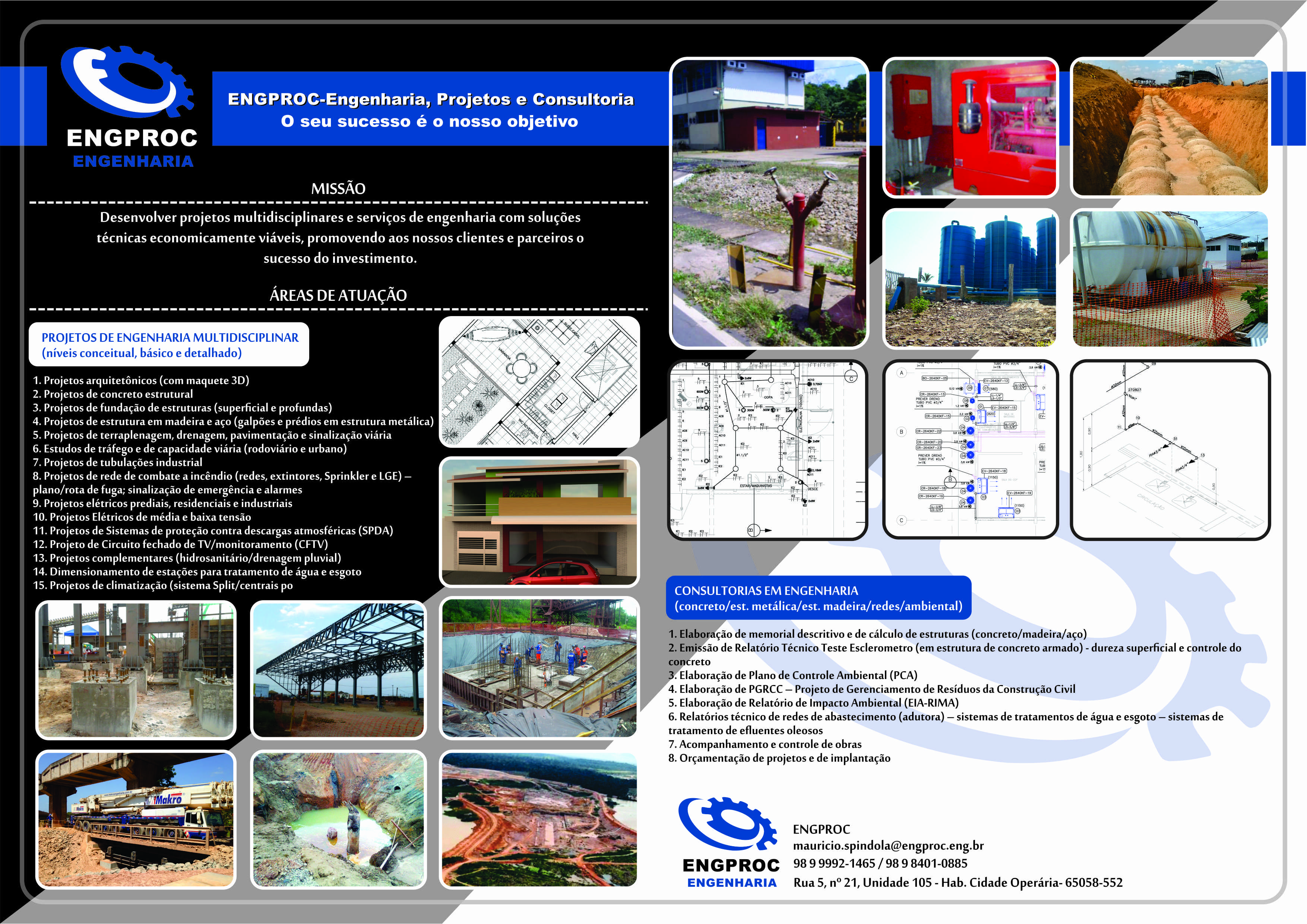 A ENGPROC – ENGENHARIA PROJETOS E CONSULTORIA LTDA foi fundada em 2006 como uma empresa de Projetos de Engenharia, focada em projetos na disciplina de civil, com elaboração de detalhamentos executivos para indústria, comércio e construção civil em geral.