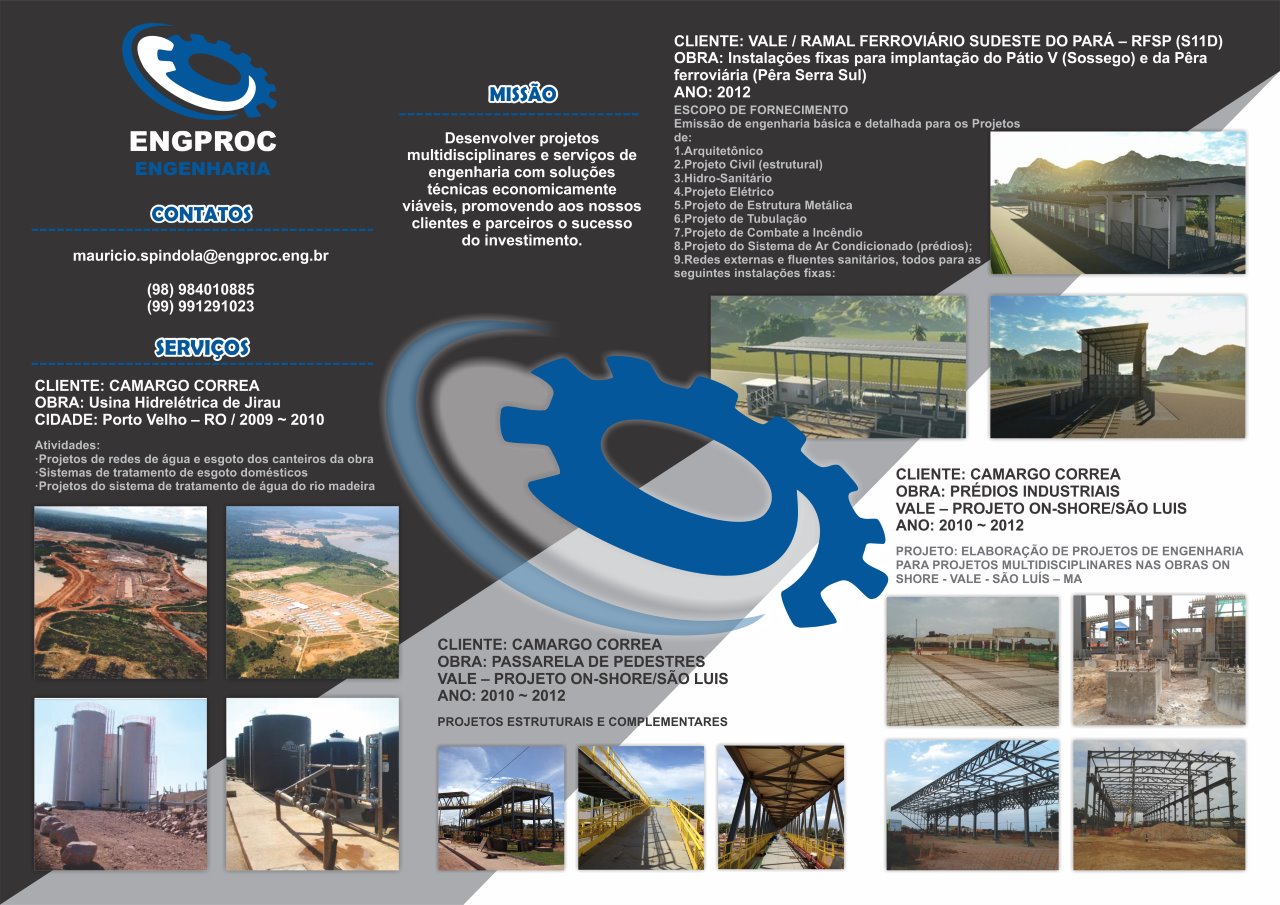 A ENGPROC – ENGENHARIA PROJETOS E CONSULTORIA LTDA foi fundada em 2006 como uma empresa de Projetos de Engenharia, focada em projetos na disciplina de civil, com elaboração de detalhamentos executivos para indústria, comércio e construção civil em geral.