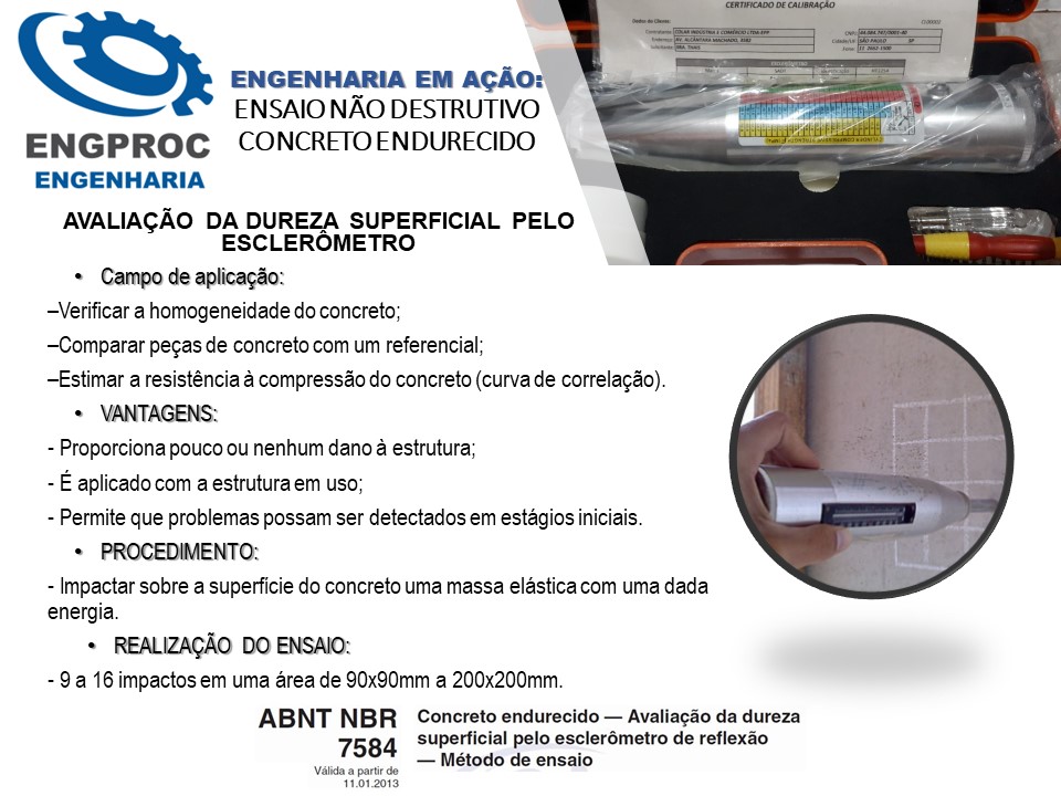 - Emissão de Relatório Técnico Teste Esclerômetro (em estrutura de concreto armado) - dureza superficial e controle do concreto