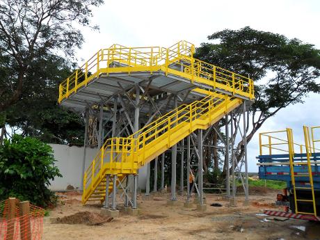 Andaimes, guarda-corpo e rampas (em estrutura metálica ou em madeira)